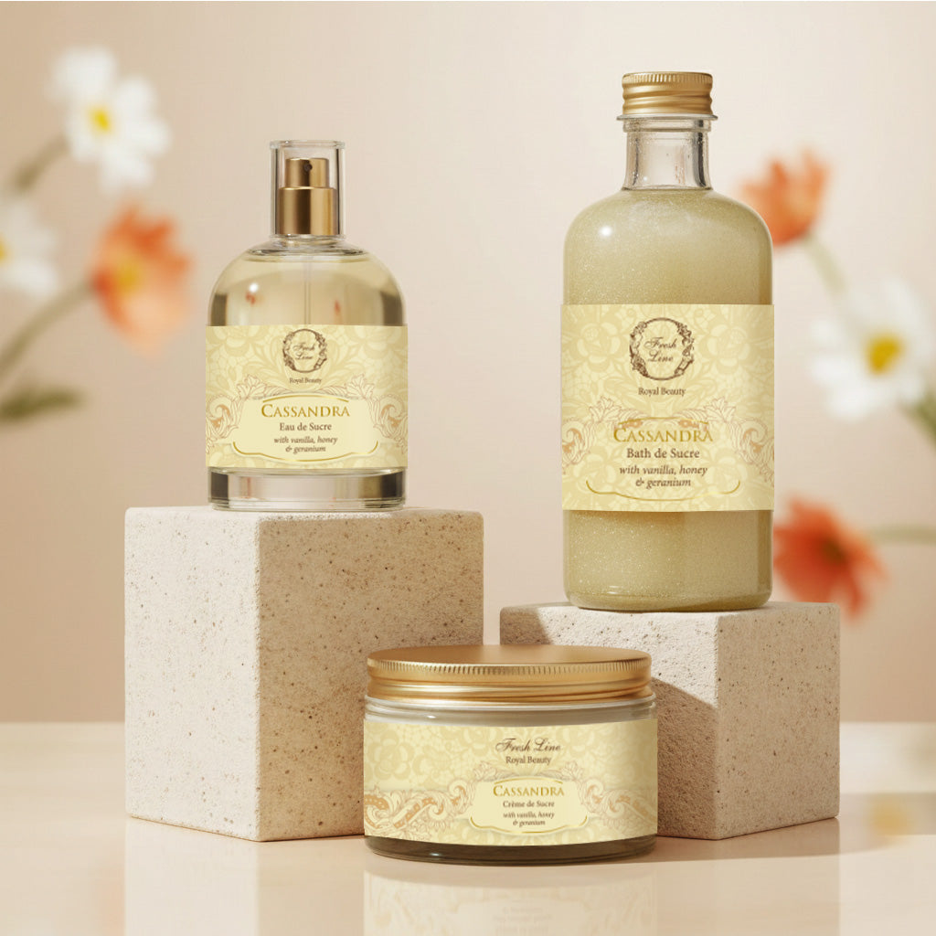 Αναζωογόνησε το σώμα και το πνεύμα σου με τη σειρά Κασσάνδρα, που συνδυάζει κομψές floral νότες με τη γλυκύτητα του μελιού και τη ζεστασιά της βανίλιας.