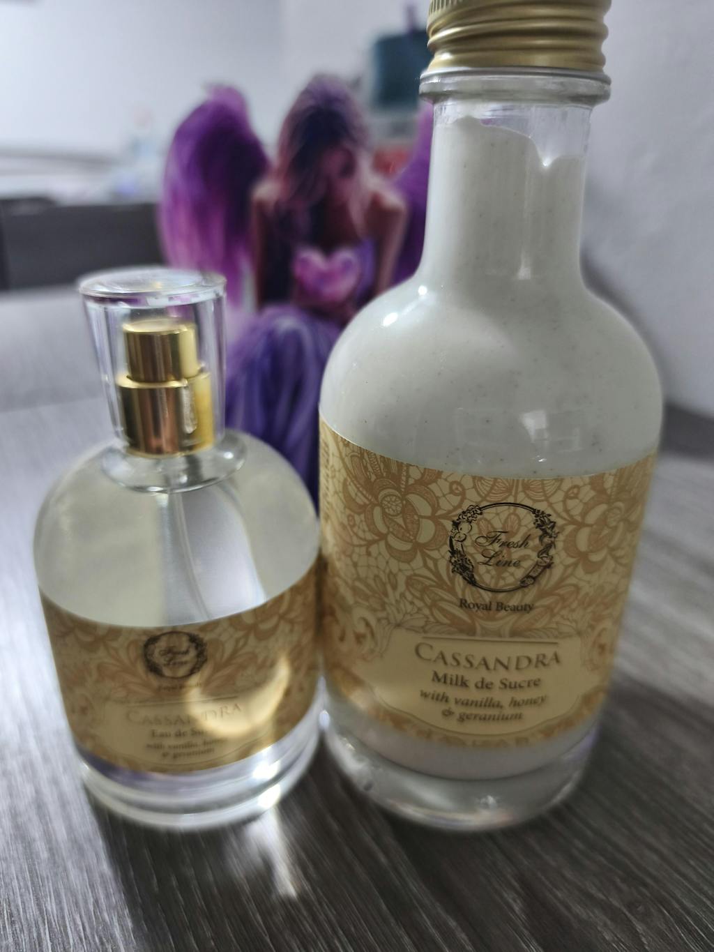 Απόλαυσε τη γλυκιά αγκαλιά του Cassandra Milk de Sucre — ένα μεταξένιο γαλάκτωμα που τυλίγει την επιδερμίδα με βαθιά ενυδάτωση, εκλεπτυσμένο άρωμα και μια διακριτική ιριδίζουσα λάμψη για αίσθηση «royal indulgence».