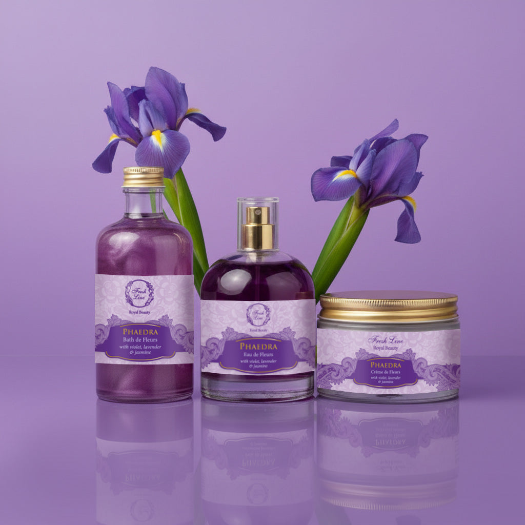 1.Φαίδρα Άρωμα Σώματος: Η φίνα σύνθεσή του συνδυάζει απαλές νότες βιολέτας με κρεμώδεις τόνους musk, τυλίγοντας το σώμα με ένα πέπλο ρομαντικής φρεσκάδας και θηλυκής γοητείας.